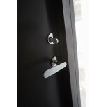 Designat dörrhandtag av mässing med dubbelverkande returfjäder. Kombinationen krom/borstad krom innebär att rosetten och handtagets baksida är i kromutförande och framsidan i borstad krom. Passar till dörrtjocklek 38-70 mm. Utsprång 65 mm.