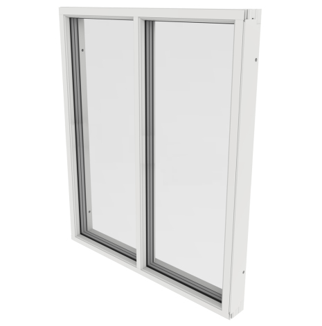 Outline karmfast 3-glasfönster med aluminiumbeklädd utsida. Fönstret är vitt (NCS S 0502-Y) på in- & utsida som standard, men det går även att få med laserad insida och ett antal standardkulörer på utsidan. Karmposten är centrerad, och kan kompletteras med ett antal spröjskombinationer som tillval.