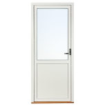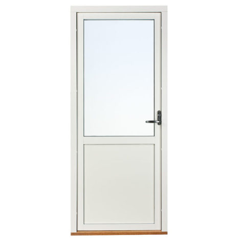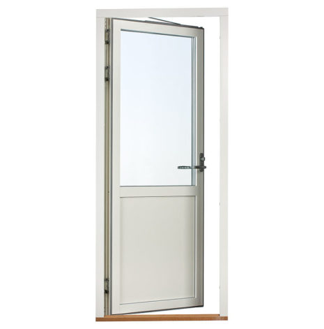 Dessa dörrar har en glasruta upptill med bröstning och isolerad fyllning i underkant. Det gör att glasrutans nedre kant bör linjera med fönster som sitter i anslutning till dörren. Du kan därmed välja om bröstningen ska matcha med fasta eller öppningsbara fönster. Har du t.ex. ett fast fönster med Modulhöjd 13 (=128 cm) brevid dörren väljer du Fast 13 som bröstning osv..