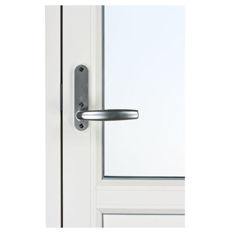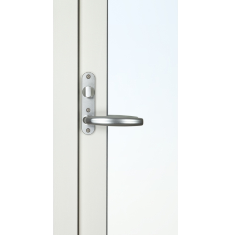 Fönsterdörrarna, som har fallkolvsspanjolett (handtaget fjädrar tillbaka när du släpper det – precis som på en vanlig dörr) och fyrpunktslåsning som försvårar vid inbrottsförsök. Dörren är försedd med vred på insidan och täckbricka på utsida, men kan beslås med olika låsalternativ, se mer under tillval handtagspaket.