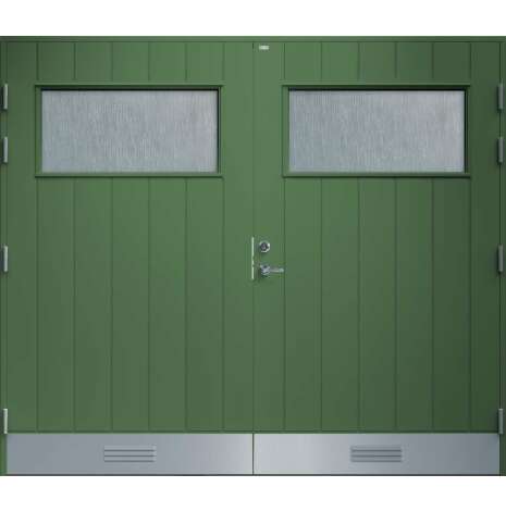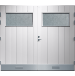 Garagedörr i traditionell stil med cotswoldglas. Som standard är dörren Vit (NCS S0502-Y).