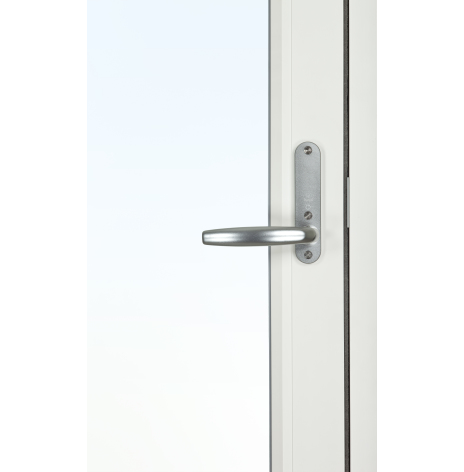 Fönsterdörrarna, som har fallkolvsspanjolett (handtaget fjädrar tillbaka när du släpper det – precis som på en vanlig dörr) och fyrpunktslåsning som försvårar vid inbrottsförsök. Dörren är försedd med vred på insidan och täckbricka på utsida, men kan beslås med olika låsalternativ, se mer under tillval handtagspaket.