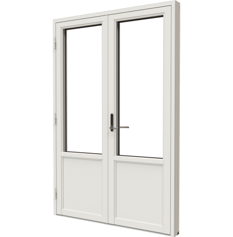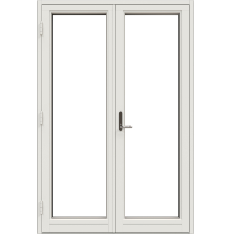 På en pardörr väljer du hängning på den aktiva gångdörren. Den passiva dörren kan vid behov öppnas med handtaget på insidan.