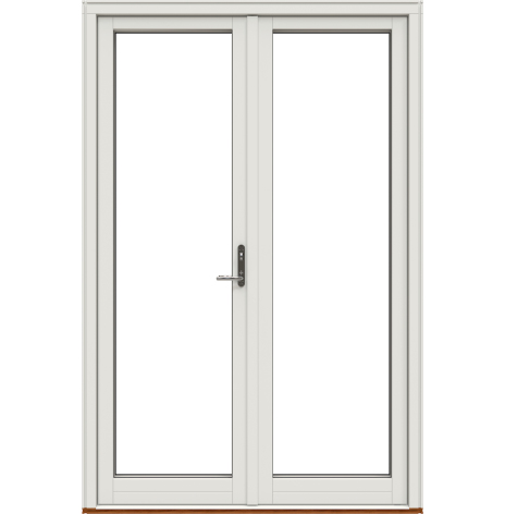 Helglasad parfönsterdörr Aluminium från NorDans Serie NTech. Dörren är vitmålad i NCS S 0502-Y som standard.