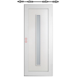 Dekorativ innerdörr med ett stående härdat klarglas. Finns vitmålad som standard men du kan också välja valfri kulör.