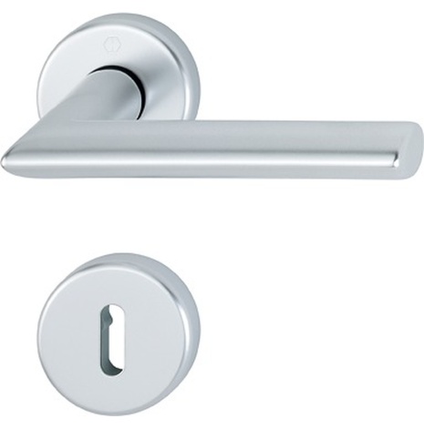 Innerdörrshandtag Swedoor Stockholm i silver med nyckelskylt.