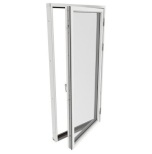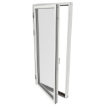 Outline Helglasad fönsterdörr 3-glasfönster med aluminiumbeklädd utsida. Dörren är vitmålat NCS S 0502-Y som standard. Altandörrarna, också kallad fönsterdörr har samma grunddesign som fönstermodellerna i serien Outline. Dörren öppnas utåt.