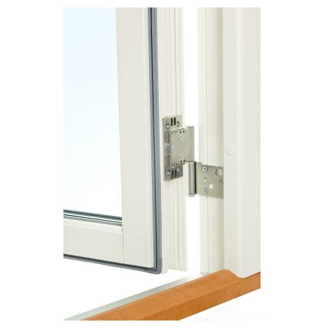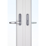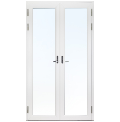 Fönsterdörrarna har en fallkolvsspanjolett på den aktiva dörren som gör att handtaget fjädrar tillbaka när du släpper det – precis som på en vanlig dörr. Dörren levereras som standard med låsvred på insidan.