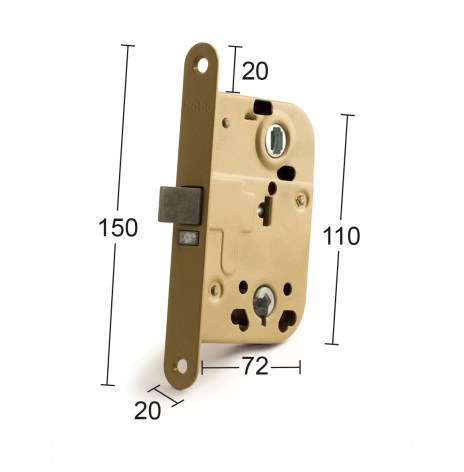 Symmetriskt låshus av stål för innerdörrar. Levereras med nyckel och skruv. Vändbart tryckesfall för höger- eller vänsterhängda dörrar. Vid behov av slutbleck rekommenderas Habo typ 6510.