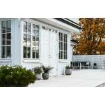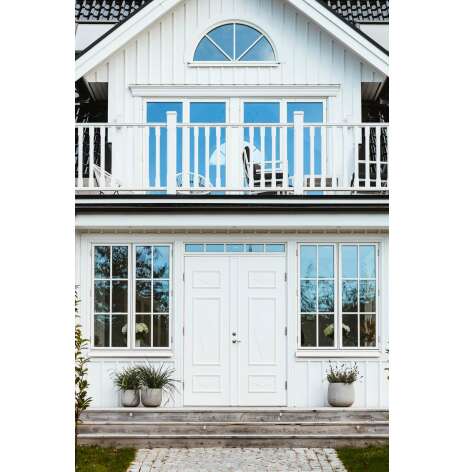 En ytterdörr ska vara välkomnande och är det första du och dina besökare möts av. Du kan ge din nya dörr ett personligt utseende med något av våra tillval. Du kanske vill byta ut glaset, eller välja en annan färg. Stilmässigt kan handtagen vara pricken över i på en ytterdörr. Vi har flera olika beslagspaket att välja bland, både traditionella och stilrena varianter, samt elektroniskt lås. Tittöga, sparkplåt eller dörrbroms är andra tillval som får dörren både snygg och funktionell.