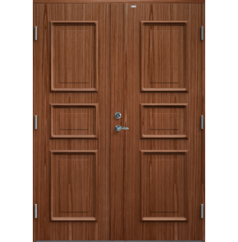 Elvira är en klassisk ytterdörr i konstteak med dörrspeglar markerade med lister. Insidan är slät, men går att få dekorerad som utsidan.
