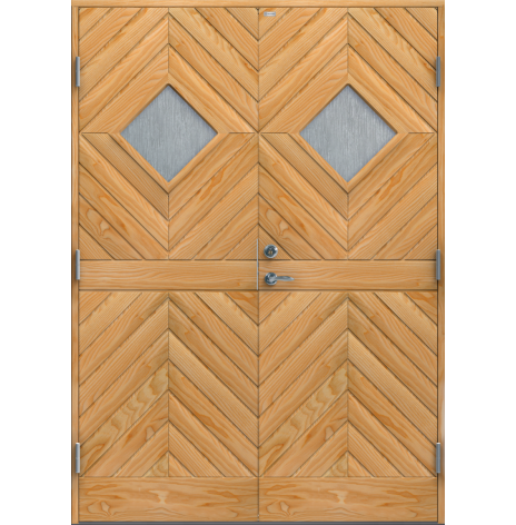 Karin Furu är en parytterdörr i traditionell stil med diagonal panel i form av spårfräst dekor samt cotswoldglas. Insidan är slät, men går att få dekorerad som utsidan.