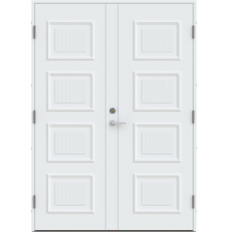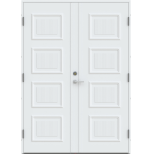 Signe tät är en klassisk parytterdörr med fyra utvändiga speglar med spår och utvändigt listverk på varje dörrblad. Insidan är slät, men går att få dekorerad som utsidan. Dörr och karm levereras vit NCS S 0502-Y som standard.