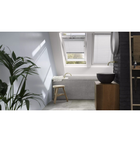 VELUX persienn för takfönster är fukttålig och kräver inte mycket underhåll. Den passar därför bra i både badrum och kök. Den unika designen har inga snören som stör. Vinkla lamellerna för att reglera vinkeln och mängden inkommande ljus.