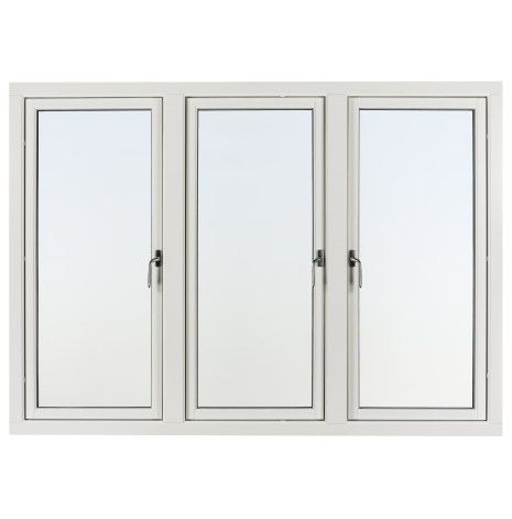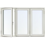 Tre stycken sidohängda utåtgående fönster med 3-glas i samma karm. Passar både äldre och moderna hus. U-värde 1,2. Låsanordning med hög inbrottssäkerhet och Integrerat vädringsbeslag. In och utsida i täckmålat eller laserat trä. Glaslister och spröjs i vit aluminium på vitmålade produkter.