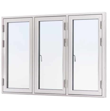Svenska Fönster Rak profil (fd Traryd Optimal) Sidohängt utåtgående treluftfönster innebär tre separata bågar som går att öppna var för sig i samma karm. Ett 3-glasfönster som passar både äldre och moderna hus. Låsanordning med hög inbrottssäkerhet och Integrerat vädringsbeslag. Fönstret har vitmålade trädelar (NCS S 0502-Y) och utvändig vitlackerad aluminiumbeklädnad Ral 9010 som standard, men kan också fås med ett antal standardkulörer på utsidan utan tilläggskostnad.