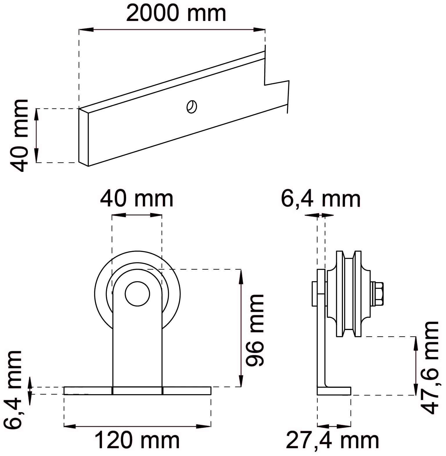 Levereras med 2 stycken toppmonterade skjutdörrsrullar