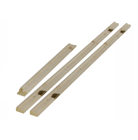 Obehandlade karmsidor till innerdörr med snap-in-gångjärn. Djup 92 mm. Gångjärnsida, överstycke och slutblecksida ingår.