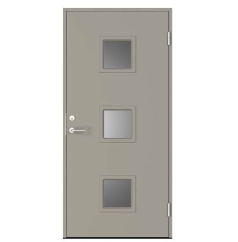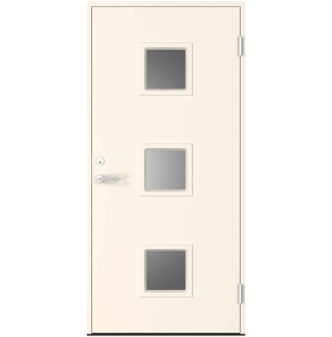 Glas: Isolerglas (klarglas) som standard. Frostat som tillval. Glaslister i samma yta som dörren