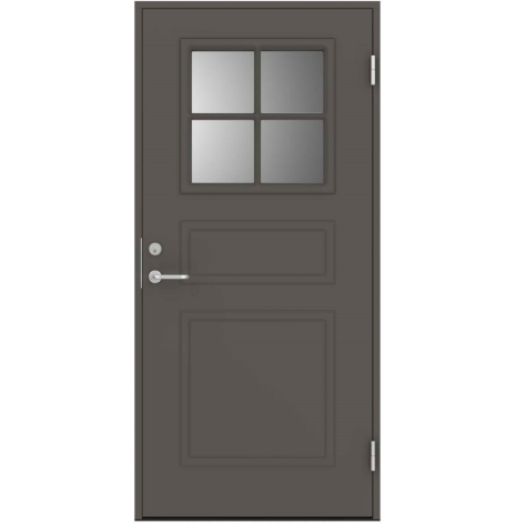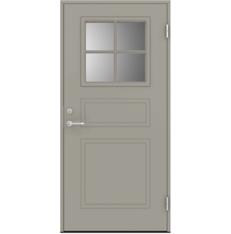 Glas: Isolerglas (klarglas) som standard. Frostat som tillval. Glaslister i samma yta som dörren
