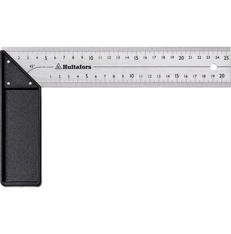 Vinkelhake med anslag av glasfiberarmerad ABS-plast och millimetergradering i över- och underkant på klingan.