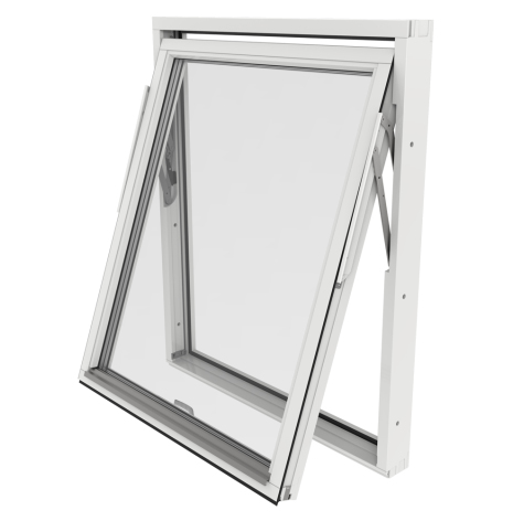 Outline vridfönster med 3-glas isolerruta. Vitmålat NCS S 0502-Y som standard, men kan fås laserat i ett antal standardkulörer.