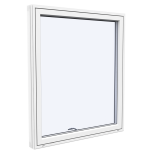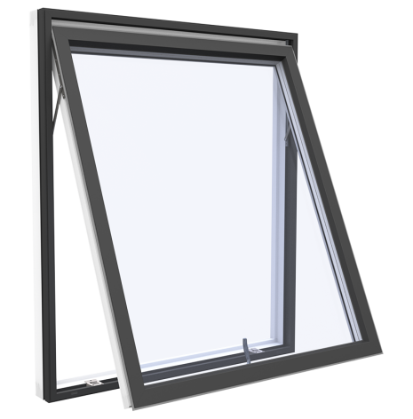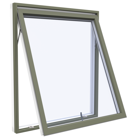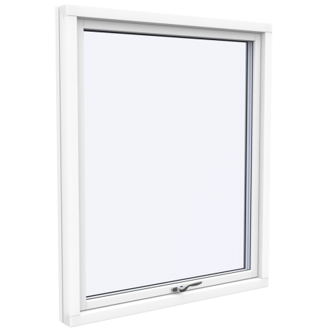 Toppstyrt fönster som kan öppnas 45 grader utåt. Beslagen tål en bågvikt på upp till 60kg och är dolda från utsidan för ett stilrent och estetiskt intryck. Fönstret har ett fast vädringsläge och en öppningsbegränsning (barnspärr). Välj mått och utseende på ditt fönster som exempelvis spröjs, rak profil eller antikprofil för mer klassiskt utseende.