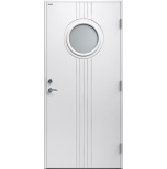 Gullan är en ytterdörr i traditionell stil med spårfräst dekor och runt klarglas. Insidan är slät, men går att få dekorerad som utsidan. Dörr och karm levereras vit NCS S 0502-Y som standard.