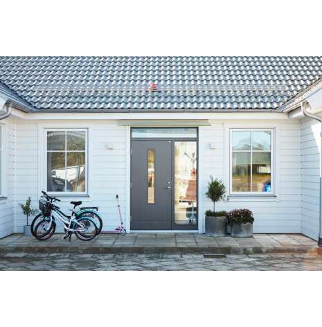 En ytterdörr ska vara välkomnande och är det första du och dina besökare möts av. Du kan ge din nya dörr ett personligt utseende med något av våra tillval. Du kanske vill byta ut glaset, eller välja en annan färg. Stilmässigt kan handtagen vara pricken över i på en ytterdörr. Vi har flera olika beslagspaket att välja bland, både traditionella och stilrena varianter, samt elektroniskt lås. Tittöga, sparkplåt eller dörrbroms är andra tillval som får dörren både snygg och funktionell.