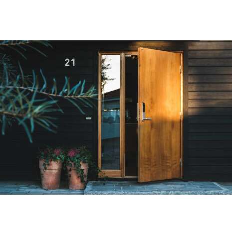 Handtag, låscylinder och cylindertillbehör ingår ej, men kan beställas under våra tillval. Alla våra kompletta behörssatser är anpassade för borta säkerfunktionen med dubbla cylindrar, vred på insidan och levereras med 5 st nycklar. Du kan även välja till ett elektroniskt lås från Yale Doorman.
