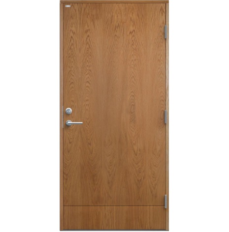En skyddande sparkplåt skyddar dörrens nederkant vid hårt slitage t.ex. där mycket barn gärna sparkar av sig snö mm.
