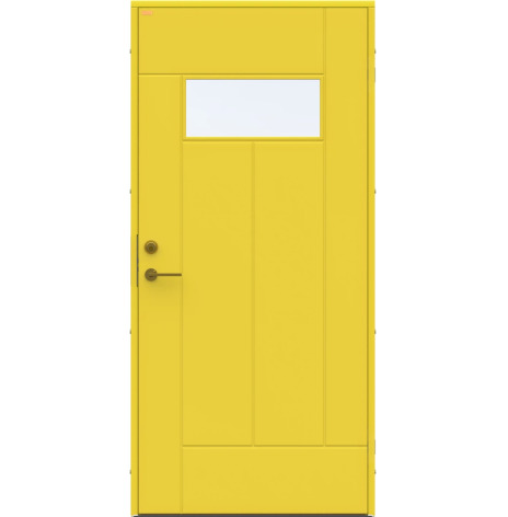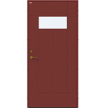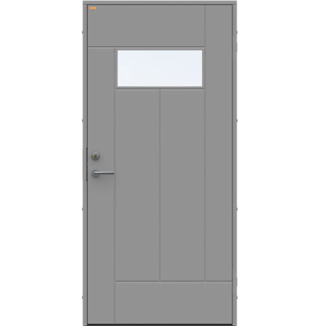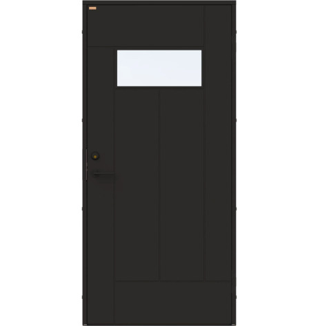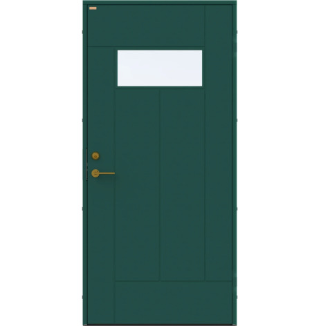 Tidlös ytterdörr från Diplomat x Minimarket med glasruta och dekorspår. Byte till valfri Minimarket-kulör ingår.
