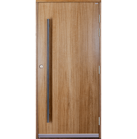 Våra Ek- och Teak-dörrar har en kraftig stomme med dubbelt ramträ, precis som våra andra dörrar. Ekdörrar är fanerade med Ek av A-kvalitet på in- och utsida. Teakdörrar är fanerade med Teak av A-kvalitet på utsidan och Teakinfärgat fanér på insidan. Dörrbladen har massivt ramträ i Ek/brunlaserad Ek. Karmen är gjord av massiv ek med mycket hög kvalitet. Tröskeln är i slitstark hårdträ med slitskena.