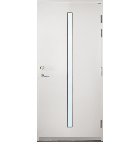 Dörrarna i denna serie är tillverkade med samma kraftiga stomme som i dom andra serierna. Karm med tröskel i hårdträ och slitskena, 4 justerbara gångjärn med bakkantssäkring och dörrarna målade med 3 lager färg för bästa finish och slitstyrka. Standard låskista är Dorma DL 9 1925 motsvarande funktion som Assa 2500 med bortasäkring (hakregellås).