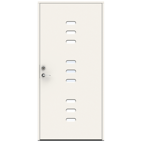 Cosmos är slät på ut- och insida. Dörr och karm levereras vit NCS S 0502-Y som standard.