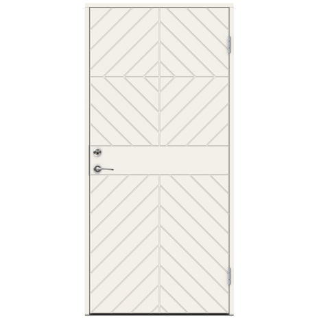 Grieg är spårfräst på utsidan och slät på insidan. Karm och Dörrblad målade i NCS S0502-Y som standard.