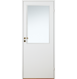 Lättdörr av helt slät modell med härdat klarglas. Vitmålad som standard men finns också i valfri kulör.