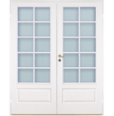 Formpressad innerdörr med klassiskt utseende och härdat klarglas med dekorspröjs. Vitmålad som standard men finns också i valfri kulör.