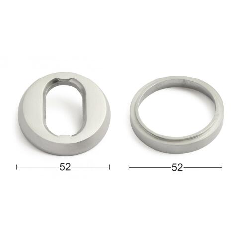 Cylinderring 9 mm + förhöjningsring 7 mm av mässing. Endast cylinderringen monteras då låscylindern sticker ut 6-11 mm från dörrbladet. Cylinderring + förhöjningsring monteras då låscylindern sticker ut 12-18 mm från dörrbladet. Vid längre utstick kompletteras montaget med en Cylinderring Universal Extra.