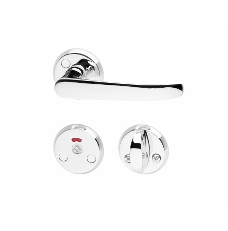 Dörrhandtag av zink, inklusive wc-beslag. Passar till dörrtjocklek 38-42 mm. Utsprång 48 mm. Finns även med nyckelskylt.