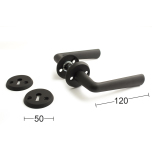 Dörrhandtag och nyckelskylt av zink/zamak. Passar till dörrtjocklek 38-42 mm. Utsprång 60 mm. Finns även som ytterdörrhandtag.