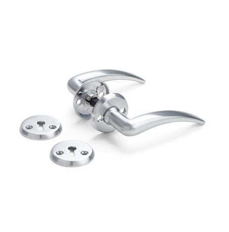 Dörrhandtag och nyckelskylt av zink/zamak. Passar till dörrtjocklek 38-42 mm. Utsprång 50 mm.