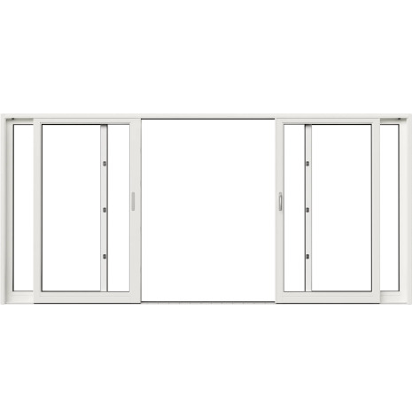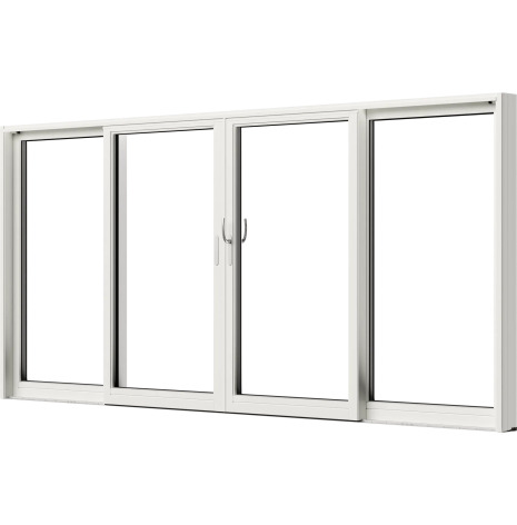 Parskjutdörr Ntech 3-glas Vitmålat Aluminium, 4-delad skjutdörr med 2 skjutbara delar och 2 fasta delar.