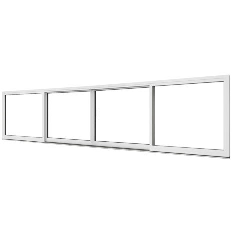 4-delad skjutdörr med 2 skjutbara delar och 2 fasta delar.