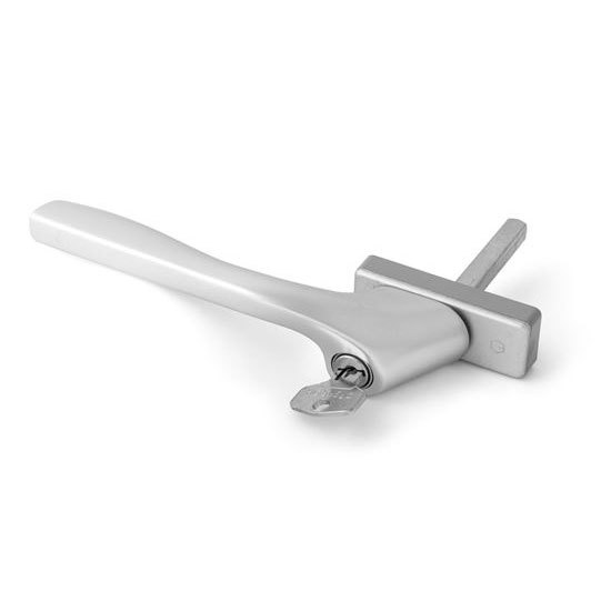 Invändigt låsbart fönsterhandtag ( säkerhetshandtag / barnskyddslås ) modell Hoppe Pure, av aluminium i nyans Silver.