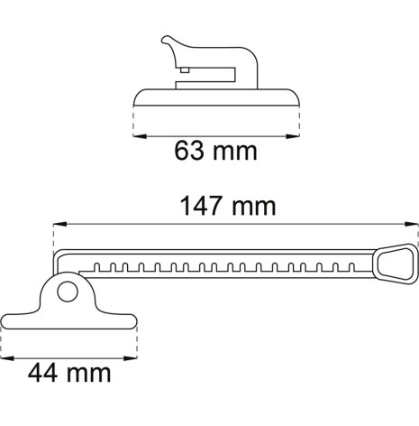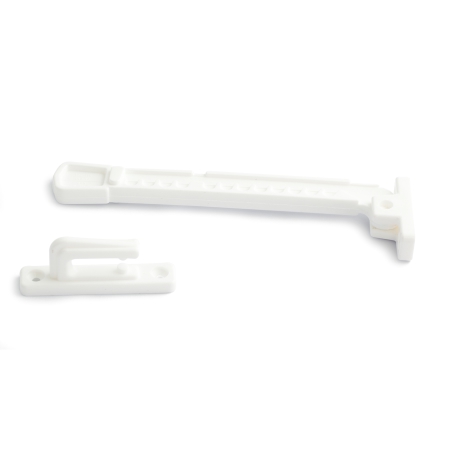 Fönsterhållare av plast. För utåtgående fönster. Ej barnskyddande.