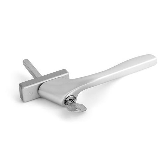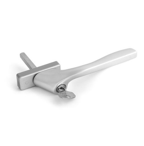 Invändigt låsbart fönsterhandtag ( säkerhetshandtag / barnskyddslås ) modell Hoppe Pure, av aluminium i nyans Silver.