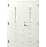 Kvalitetsytterdörr från NorDan - Bor parytterdörr - Rutan 831PG2. I vardera dörrbladet 2 glas samt integrerad spröjs. Svensktillverkade ytterdörrar av robust konstruktion med dubbla stålplåtar, extra klimatpackning samt kraftig, 56x105 mm, lamell-limmad, fingerskarvad och vakuumimpregnerad karm. Ytterdörren levereras med låskista ASSA 2002, utan cylinder och trycke. Handikappvänlig kantregel för enkel öppning och låsning av det passiva dörrbladet.