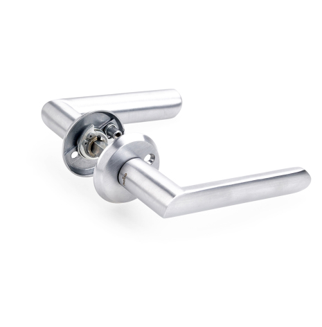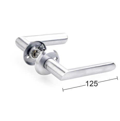 Dörrhandtag av mässing med dubbelverkande returfjäder avsett för ytterdörr med modullåskista. Passar till dörrtjocklek 38-70 mm. Utsprång 60 mm.