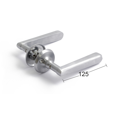 Dörrhandtag av mässing med dubbelverkande returfjäder avsett för ytterdörr med modullåskista. Passar till dörrtjocklek 38-70 mm. Utsprång 60 mm.